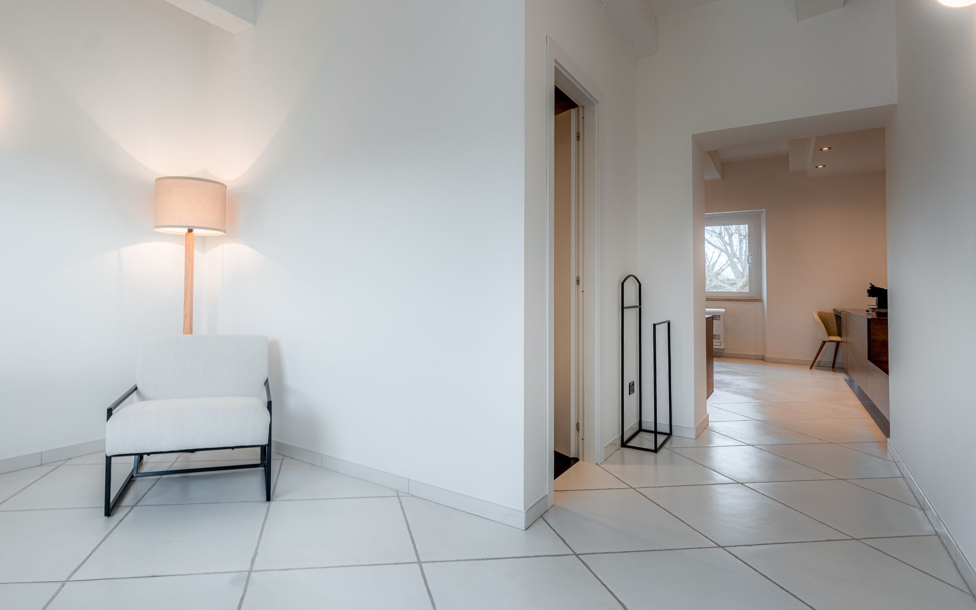 Arredata con gusto sobrio ma curato, la Matrimoniale Standard dispone di un letto matrimoniale comodo e spazioso, illuminato da luce naturale che filtra dalle grandi finestre con vista sul giardino principale della Tenuta. I materiali utilizzati – legno, tessuti neutri, toni caldi – contribuiscono a creare un’atmosfera rilassante e autentica.